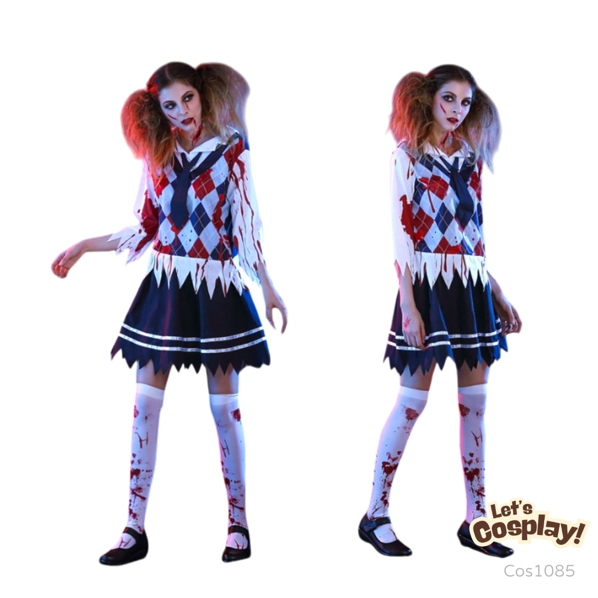 【成人萬聖節服裝限定】血腥校園喪屍學生 女裝 Cosplay 恐怖校園風 海洋公園哈囉喂 必備 Halloween Costume Zombie costume cos1085