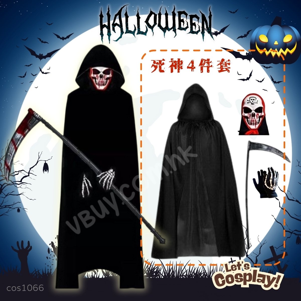Vbuy lets Cosplay【成人萬聖節服裝限定】死神 Cosplay 4 件套|骷髏裝・恐怖造型・派對舞台必備|Halloween cosplay|海洋公園哈囉喂 cosplay 服裝 cos1066